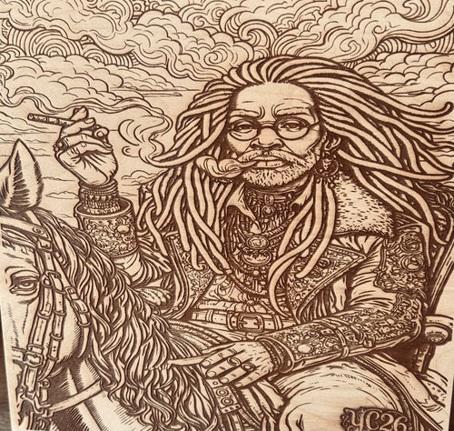 A Man and His Horse — Laser Engraved Basswood (11×11)